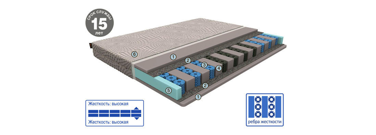 Верхний слой из высокоплотной пены Sky Cell дарит упругую поддержку и комфортную высокую жесткость. Дополнительные ребра жесткости из высокоплотной пены по всей площади матраса обеспечивают уникальную упругость, дарящую здоровый сон и заряд бодрости на весь день. Повышенная воздухопроницаемость пружин Octaspring ® обеспечивает комфортную свежесть спального места на протяжении всей ночи.